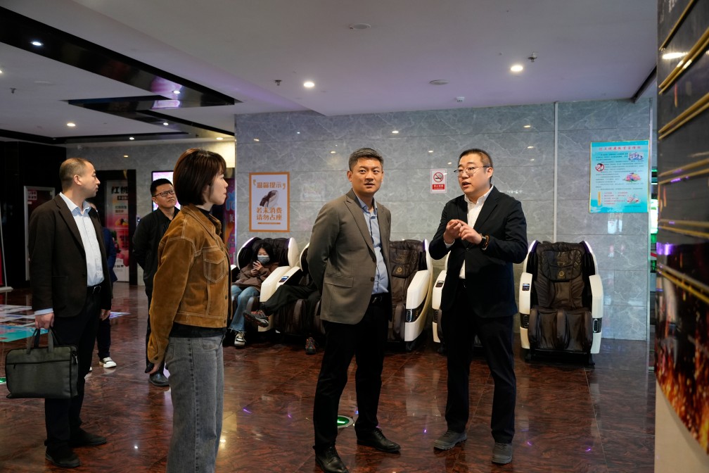 劉書記講到,華百電影文化廣場作為濟(jì)陽首家城市綜合體,不僅是商業(yè)地標(biāo),更是展現(xiàn)城市軟實(shí)力的文化會客廳。從餐飲購物到休閑娛樂,每一處細(xì)節(jié)都對提升市民生活品質(zhì)、改善消費(fèi)理念起到了重要作用,更為區(qū)域經(jīng)濟(jì)持續(xù)注入活力。張總對黨建工作以及文化事業(yè)的關(guān)注也體現(xiàn)了其作為新時代民營企業(yè)家的社會責(zé)任感和對濟(jì)陽城市文化深度挖掘與傳承的遠(yuǎn)見卓識。他強(qiáng)調(diào),營商環(huán)境是經(jīng)濟(jì)發(fā)展的“晴雨表”,更是區(qū)域競爭力的“風(fēng)向標(biāo)”。下一步,將立足職能職責(zé),把護(hù)航營商環(huán)境優(yōu)化提升作為政治監(jiān)督重點(diǎn),堅持“下沉式”問需、“靶向式”監(jiān)督、“閉環(huán)式”跟進(jìn),全面提升經(jīng)營主體獲得感,為全區(qū)經(jīng)濟(jì)社會高質(zhì)量發(fā)展破障清阻。