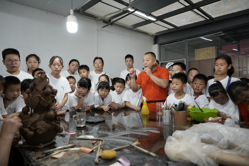 依托張勇勞模創(chuàng)新工作室,長田實業(yè)將非遺工坊與鄉(xiāng)村資源深度整合,開發(fā)了一系列黑陶研學課程,涵蓋“黑陶歷史探秘”“拉坯成型體驗”“觀禮開窯儀式”等模塊。青年工匠化身研學導師,帶領學生從泥土的觸感中感受千年陶藝的溫度,在拉坯機的旋轉中感悟“人器合一”的匠心。