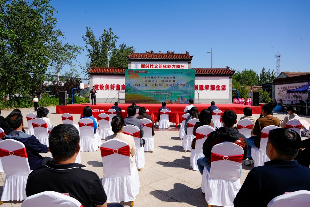 鄧部長(zhǎng)在活動(dòng)中發(fā)表致辭。他講到,濟(jì)陽,一座非遺活態(tài)傳承的“文化寶庫”。黃河奔涌千年,孕育了濟(jì)陽獨(dú)特的人文基因。這里有起源于龍山文化的黑陶工藝,泥火交融間淬煉出“黑如漆、亮如鏡”的千年技藝;有列入國(guó)家非遺的鼓子秧歌,田間地頭的質(zhì)樸舞步,跳出了黃河兒女的豪邁氣魄;更有鉤繡、柳編等非遺手藝,一針一線、一編一織,凝結(jié)著濟(jì)陽人民的智慧與匠心。他指出,五一正值春末夏初,濟(jì)陽大地瓜果飄香、稻田如畫:在“中國(guó)西瓜之鄉(xiāng)”仁風(fēng),采摘“富硒西瓜”,品味清甜;在垛石番茄園,體驗(yàn)“柿”界奇妙,感受豐收喜悅;漫步稻田研學(xué)基地,盡收“稻花香里說豐年”的田園意境……更有非遺手造市集、黃河美食盛宴、民俗文化展演等等,可在沉浸式體驗(yàn)中觸摸黃河文化脈絡(luò),共享“詩與遠(yuǎn)方”。他表示,五一期間,將推出系列惠民政策,讓游客感受濟(jì)陽人的熱情與真誠。