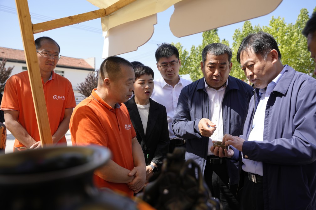 非遺展臺(tái)集中呈現(xiàn)黑陶制作、彩塑、烙畫、木版年畫等文化遺產(chǎn),領(lǐng)導(dǎo)們通過非遺傳承人的講述,感受技藝背后的歷史積淀,鼓勵(lì)非遺項(xiàng)目走出深閨、走向市場(chǎng),融入現(xiàn)代生活,實(shí)現(xiàn)“雙創(chuàng)”發(fā)展。濟(jì)北手造展臺(tái)則匯聚黃河沿岸的民間手造精品,既有老粗布、鉤繡等傳統(tǒng)工藝,也有融入現(xiàn)代設(shè)計(jì)的黑陶文創(chuàng)產(chǎn)品,凸顯匠心與創(chuàng)新的結(jié)合。此外,還有以長(zhǎng)田樂享超鮮蛋、烏棗、小磨香油、永慶昌熟食、肖家酥火燒等在地食材為亮點(diǎn),展示了濟(jì)陽“北緯37度黃金農(nóng)業(yè)帶”的優(yōu)質(zhì)農(nóng)產(chǎn)品,成為鄉(xiāng)村振興的特色名片?;顒?dòng)通過場(chǎng)景化體驗(yàn)與資源整合,進(jìn)一步塑造了濟(jì)陽文旅品牌,推動(dòng)區(qū)域高質(zhì)量發(fā)展。