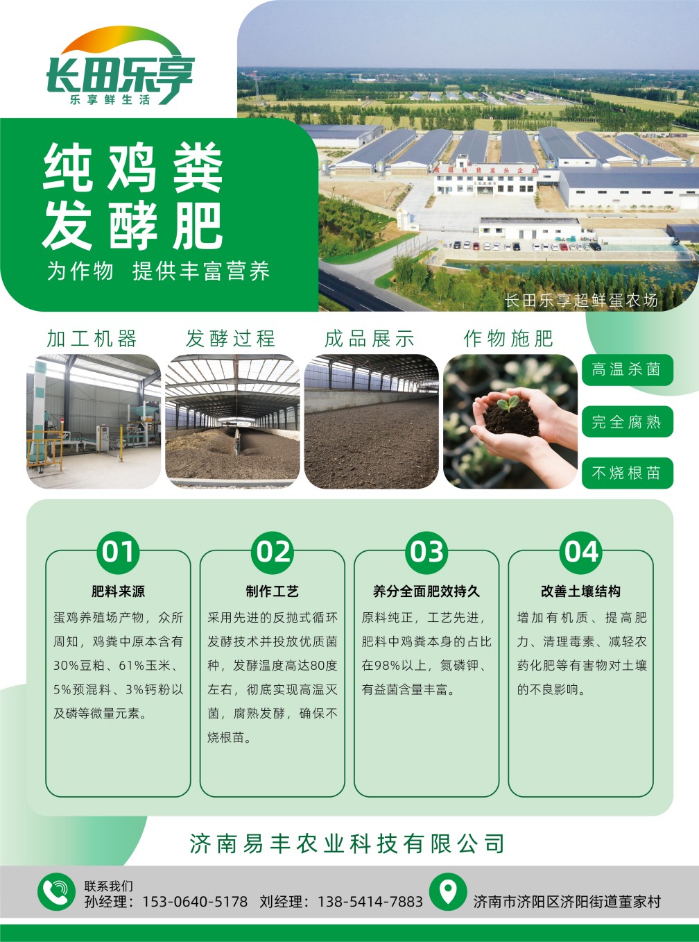03避免有害殘留:采用家禽糞便專用高溫菌發(fā)酵劑,發(fā)酵過程中溫度可達80℃,24小時內(nèi)殺滅病原菌、蟲卵及抗生素殘留,避免普通堆肥自然發(fā)酵不徹底導致的燒苗、病蟲害風險。