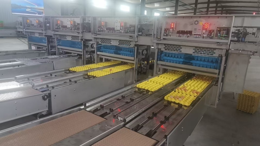 ▲標準化、智能化的雞蛋分揀設備將雞蛋按照大小、重量進行精準分類