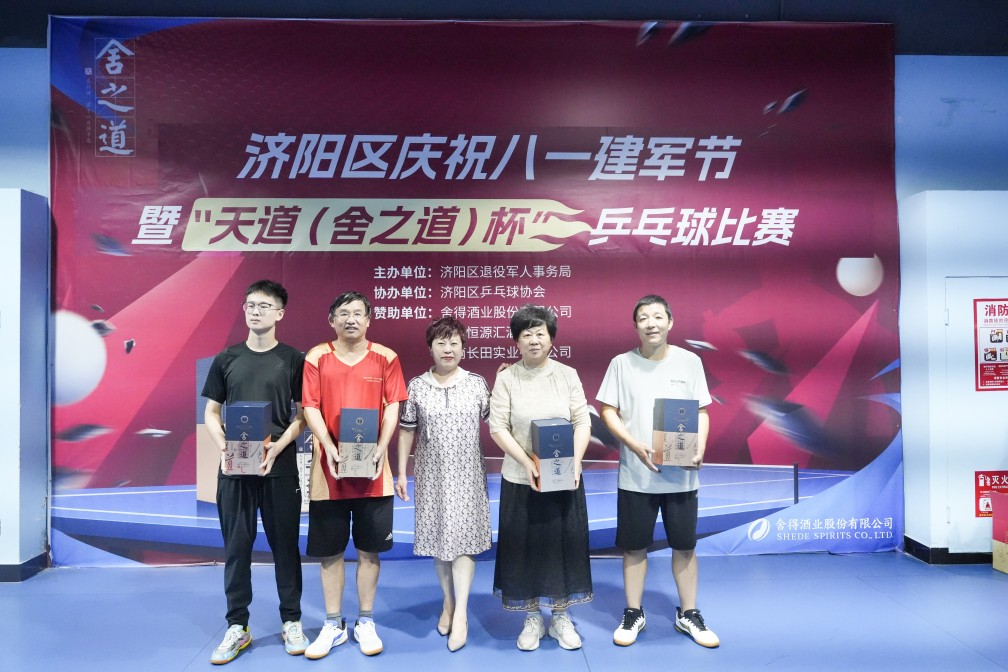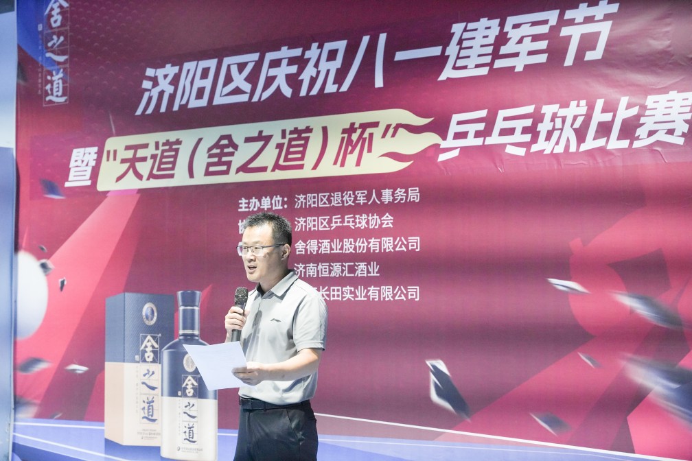 7月27日上午,濟陽區(qū)文化藝術中心乒乓球館內熱鬧非凡,銀球在空中飛速穿梭,喝彩聲此起彼伏。由濟陽區(qū)退役軍人事務局主辦,區(qū)乒乓球協會承辦,濟南恒匯源酒業(yè)(舍得酒業(yè)股份有限公司)、濟南長田實業(yè)有限公司贊助的“慶祝八一建軍節(jié)暨‘天道 (舍之道) 杯’乒乓球比賽” 在此盛大啟幕。