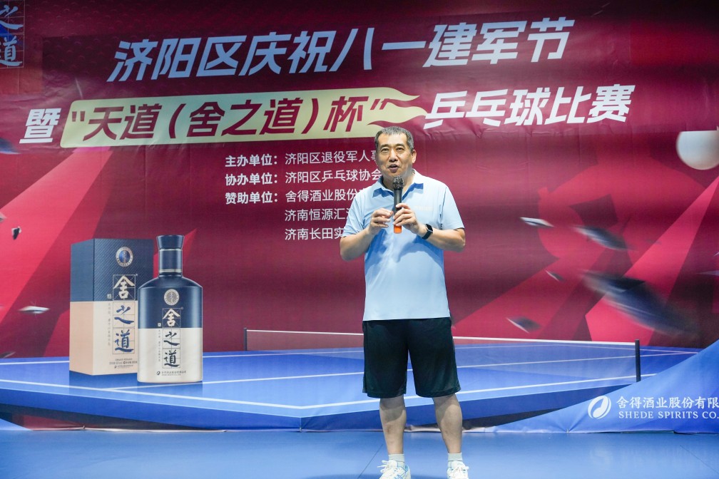 隨后,舍得酒業(yè)濟南辦事處客戶主任于磊講到,體育是活力的源泉,雙擁是我們堅守的初心。這場乒乓球賽,不僅是一場體育競技,更是一次重溫軍旅情誼、展現昂揚風貌的盛會。小小的銀球,傳遞著戰(zhàn)友間的深厚情誼,也映射著軍人永葆青春活力、積極樂觀的人生態(tài)度。他表示,舍得酒業(yè)也將在自身發(fā)展中,不斷弘揚這種拼搏進取的精神,追求卓越品質,用心釀造每一滴美酒,回饋社會各界的信任與支持。